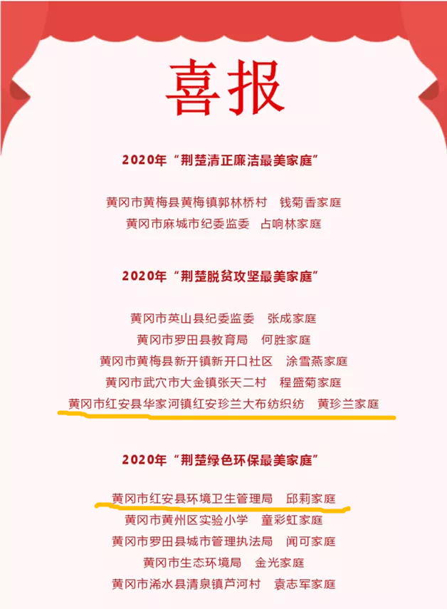 为深入贯彻落实习近平总书记关于家庭家教家风的重要论述,积极推进社会主义核心价值观在家庭生根开花,团结引领广大家庭为统筹推进疫情防控和经济社会发展贡献力量,结合绿色家庭创建行动和脱贫攻坚工作,湖北省妇联、省文明办分类别开展了寻找清正廉洁、绿色环保和脱贫攻坚最美家庭活动。