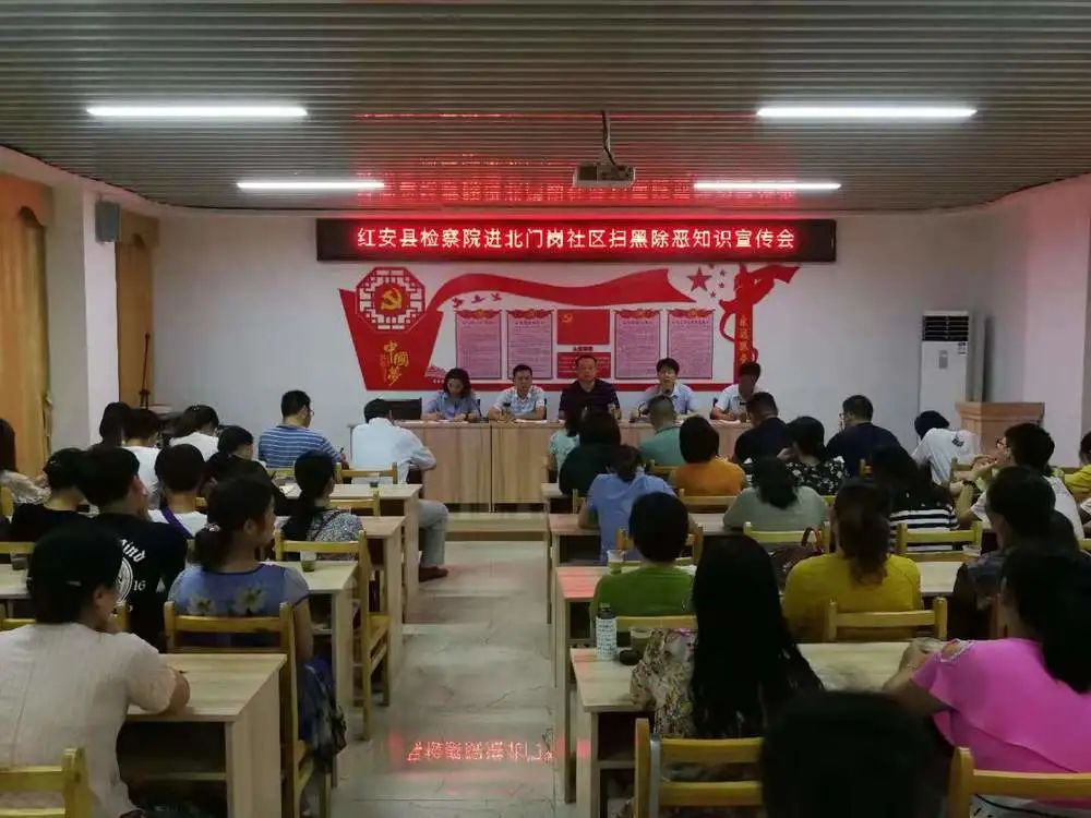 剑未出鞘,锋芒毕露。红安县人民检察院坚持法律政策宣传打头阵,渲染氛围造声势。在门户网站上开辟“扫黑除恶专栏”,在城乡重点地段悬挂宣传标语,充分利用户外电子显示屏,宣传展板等载体广泛深入宣传;向干警发放“扫黑除恶”知识清单100份,在干警微信群分享“扫黑除恶”知识信息链接70余条,在机关、企业、社区、学校开展专项宣传、警示教育、专题讲座、主题宣讲等活动20余次,向社会公众发放《“扫黑除恶”致全县人民的公开信》300余份。