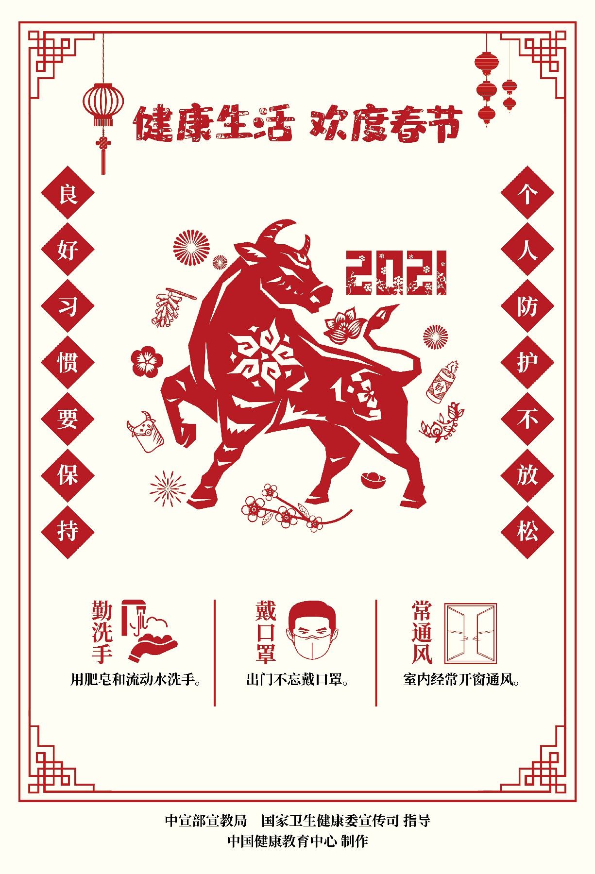 牛年将至,阖家欢乐,在欢度春节之际,红安县委文明办、县新时代文明实践中心倡导大家在节日期间做到“个人防护不放松,良好习惯要保持”,健康生活,喜迎春节!