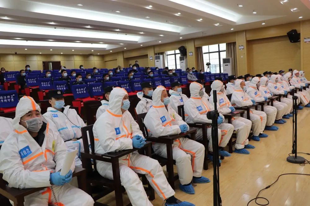省市县三级领导高度重视和支持该案庭审工作,省高院全流程、全环节通过各种方式进行业务指导。黄冈中院发挥审判专家小组作用,先后多次组织研讨涉案罪名、事实起数和证据采用等方面,严格把控案件质量关。县委政法委、县扫黑办先后组织公安、电力、卫生、消防等单位召开协调会,抽调人员150余人参与庭审保障工作,并制定各个岗位工作预案,分工明确,责任到人。此次庭审活动严格按照省市县疫情防控的要求,庭前三天组织所有进入庭审现场的人员进行了核酸检测,并严格审查旁听人员核酸检测报告,做到了一人一证一报告,最大限度降低了疫情传播风险,确保了疫情防控与审判工作两不误。