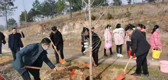 红安网消息 为全力推进“绿满太平、美化家园"行动,营造秀美山川氛围,3月12日上午,太平桥镇组织全体镇直机关单位干部职工和村组志愿者集中开展全民植树活动,在近4公里的乡道朱余主干公路两旁栽植大规格银杏一千余株。