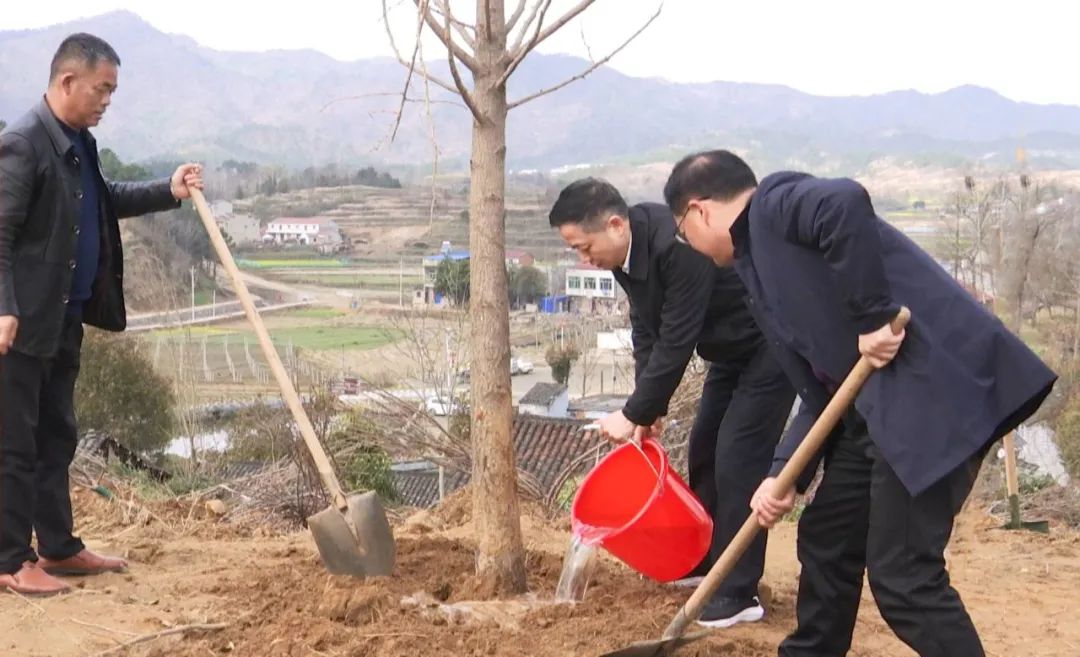 3月12日是中国植树节。黄冈市委常委、红安县委书记余学武,县长刘堂军等领导到全国红色美丽乡村试点村——七里坪镇盐店河村,栽下一棵棵树苗,播种一片片新绿,掀起全县春季义务植树热潮。