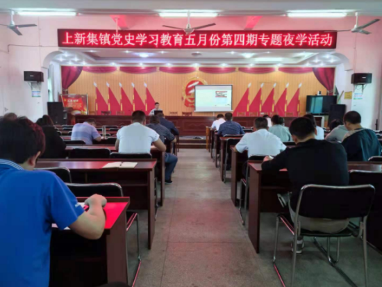 红安网消息 5月27日晚上,红安县上新集镇举行党史学习教育五月份第四期专题夜学活动。