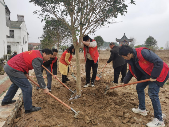 红安网消息 又是一年芳草绿,正值相约植树时。3月18日下午,火连畈茶场组织脱产干部,在火连畈社区开展植树活动,经过两个多小时的忙碌,20余人将30棵中型桂花树和100余株小型绿植栽种在社区公园,为社区居民增添新绿。