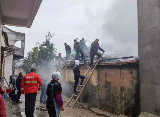 红安网消息 3月20日上午11时许,华家河镇金湾村一处老旧民房疑因电线老化起火,现场浓烟滚滚,火光冲天。火情就是命令,镇派出所、金湾村“两委”干部、王冲村、滚河村、邓湾村、山台村等村警、护林员、民兵等群体第一时间赶赴现场参与灭火。因厨房内堆有柴草,火灾迅速蔓延至多间房屋,浓烟滚滚翻涌,火苗劈啪作响,人不能近。且厨房内有一罐煤气罐,在高温炙烤下配件均已熔化,随时有爆炸风险,危及扑火干群及周边住户安全,形势万分紧急。派出所张青、胡宝平、王鑫等三名民警一边迅速对煤气罐喷水降温,一边看准时机奋不顾身冲进火场,抢出煤气罐,转移至开阔广场,及时化解爆炸风险。经近一个半小时扑救,明火全部扑灭,无人员伤亡。
