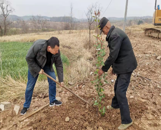 一场春雨过后,大地都透着生机,易杨家村“两委”、驻村工作队员、村护林员和公益性岗位人员来到植树现场,大家或两人一组,或三五搭档,分工协作,移苗、运苗、挥锹铲土、扶树填土、培土浇水,各个环节衔接井然有序,默契配合,干得热火朝天。明媚的春光中,一排排新栽下的树苗迎风挺立,生机勃勃,为早春的易杨家村增加了一道靓丽的风景。