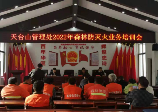 积极开展业务培训。天台山管理处多次组织管理处干部、全体村干部及生态护林员、护林员,半专业扑火队员,铜锣联防队员等人员开展森林防灭火业务培训会,邀请县应急管理局、林业局、七里派出所就森林防火预防和安全扑救作业务培训。