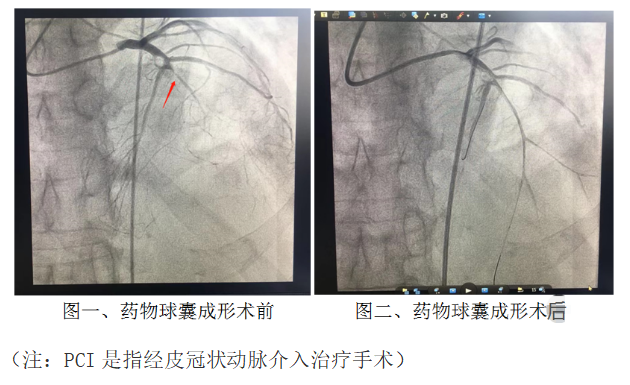 在省人民医院王朗教授指导下,该院介入中心对患者进行“无植入”介入术,予以药物球囊冠脉内释放治疗,以缩短抗血小板时间。术后立即赴ICU行血滤CRRT。术后血肌酐及血尿素氮水平未见升高,生命体征平稳。手术圆满成功。
