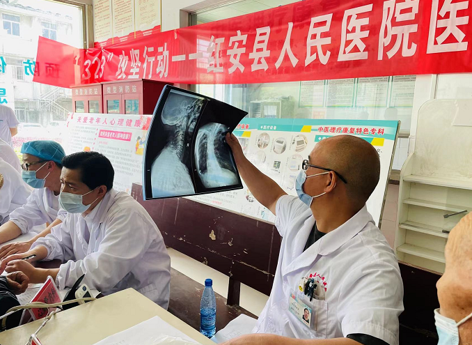 县人民医院肿瘤科、神经内科、康复医学科、胸心外科、肝胆外科、超声科、骨外科、眼科和耳鼻咽喉科专家组用通俗易懂的语言,细致讲解慢性病相关知识,针对不同病情提出了适应的治疗建议及日常生活注意事项,引导和帮助群众建立良好的健康生活方式,并发放健康科普和疾病防治宣传册。义诊过程中,该院超声科专家还用便携式彩超机为近30名需要做检查的群众行颈动脉、甲状腺、乳腺和全腹超声检查。此次义诊活动,共接待群众义诊咨询,免费测量血压100余人次,免费发放价值2000元药品。该院眼科专家还到八里湾镇毛张坞村为52名老年人开展白内障免费筛查,对符合条件的村民将择期免费进行手术,受到广大群众的一致好评。