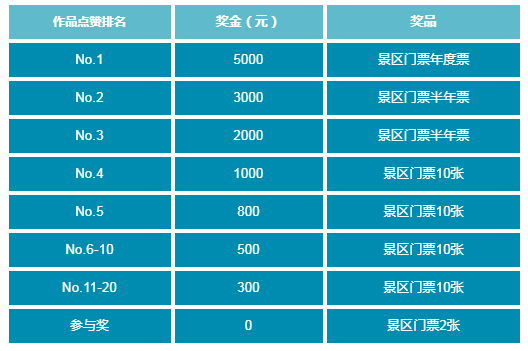 根据参赛作品点赞量排名可获得300-5000元不等的现金大奖及景区门票奖励。活动公开公平公正,可通过抖音话题榜查看作品实时数据。