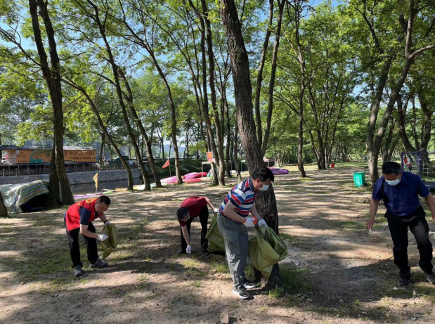 为了营造“水清、岸绿、景美”的生态环境,给游客更好的体验,我们对地面上的纸屑、饮料瓶、烟头进行集中清捡,将地面上的枯树枝搬运到垃圾箱中,经过全面细致的清理,使杨山河吧焕然一新。