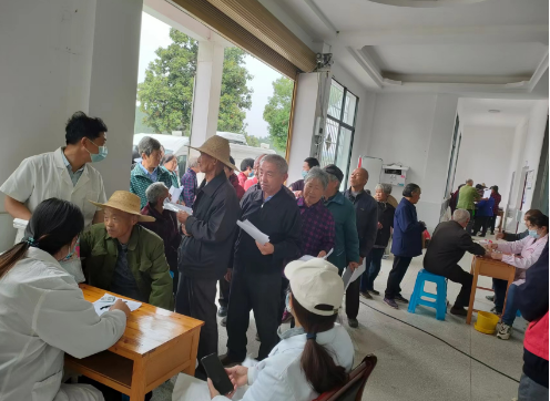 5月9日一早,红华村党员群众服务中心聚满了老人,在免费体检现场,村医熊取富正忙前忙后的帮助前来参加体检的老人有序填写表格。卫生院体检医生对65岁以上年人做B超、肝肾功能,血脂,血糖、心电图、血常规、尿常规等检查。医生检查完后耐心的对每一个老年人讲健康管理和疾病预防。