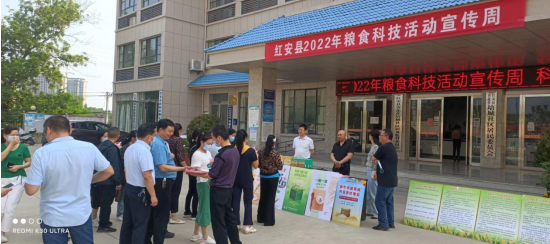红安网消息 5月24日上午,县发改局(粮食局)在杏花乡培城社区举办2022年全国粮食和物资储备科技周活动。