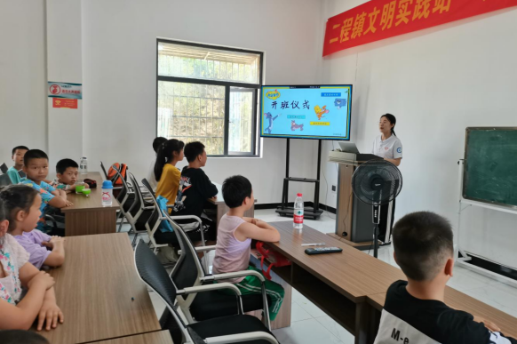 红安网消息 7月7号上午,二程镇“希望家园”暑期公益托管班举行开班仪式,来自湖北工业大学”希望家园暑期社会实践队”的5名大学生志愿者老师、31名留守儿童及双职工子女参加开班仪式。