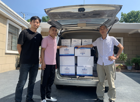 红安网消息 7月11日上午,沁园山庄负责人吴建平、红安县伊利总代理吴赐红带着10件矿泉水和1台电冰箱,回到家乡高桥镇高楼村,看望慰问了在该村开展支教活动的湖北工业大学大学生们。