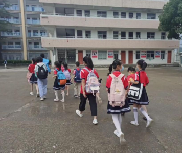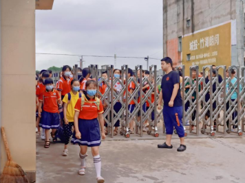 报道完成之后,家长将学生交给班主任,由其他团队成员领到学生自己的教室。为了确保每个学生的安全,从校门口到教室的道路上,一直都有队员陪伴着学生。