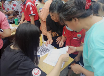 八点整,领队李梓晗组织学生与家长们有序步入校园,每一位家长都围在对应班级的班主任周围,认真聆听班主任讲述的报道要求,嘈杂的声音与忙碌的身影相互交织。看着学生脸庞上的笑容与家长的欣慰,使得团队每位成员的信心高涨,便更加努力地投入到自身工作中。