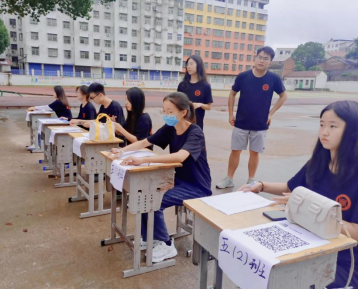 在团队成员们共同商讨后确定报到方案:在校园门口,由各班班主任坐镇负责本次的报到,家长带领学生至各班主任处签到、加群并签署安全承诺书。他们齐心协力的将桌椅快速摆放整齐,等待着家长们带学生来报道。