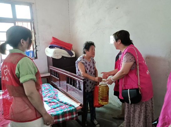 红安网消息 7月13日,城关镇北门岗社区联合红安县妇联开展下基层察民情解民忧暖民心实践活动,带着食用油、挂面、绿豆、皮蛋等生活物资走访慰问困难家庭,给他们送上党和政府的关怀和温暖。