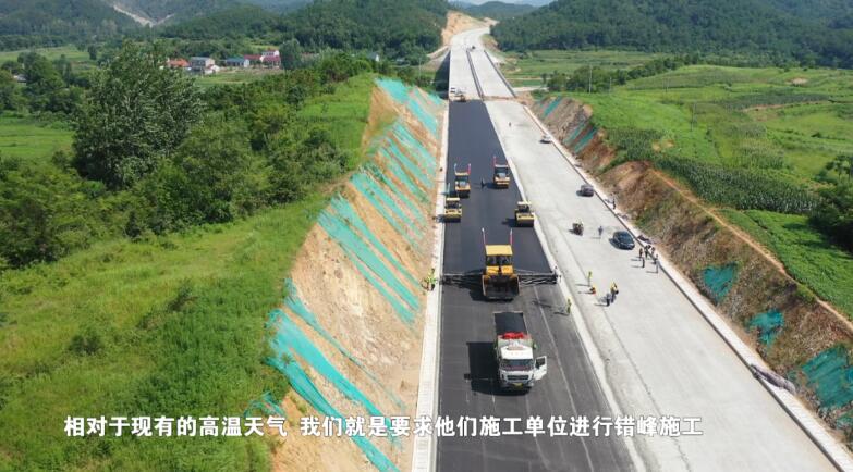 230国道红安县七里坪至红安县城段改扩建工程建设管理项目部工程部部长熊险峰说:“高温天气条件下,要求施工单位错峰施工,沥青面层施工过程中不能间断,我们就釆取多种防暑降温措施,确保施工顺利。”