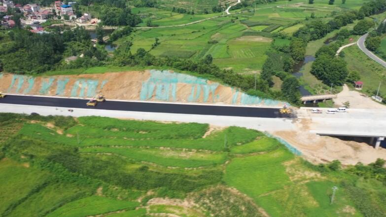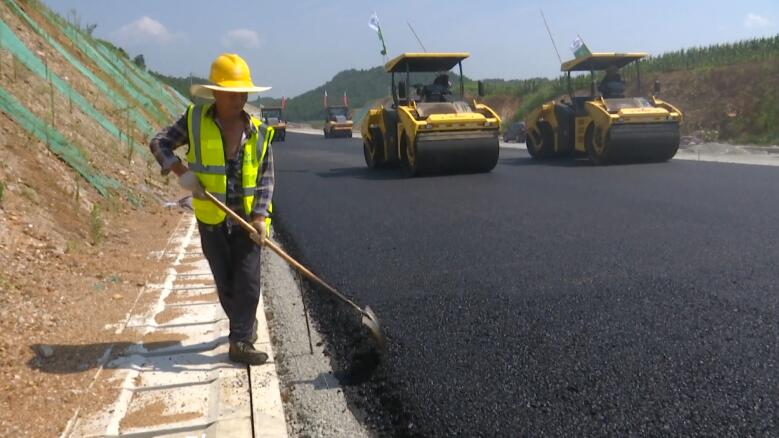 记者近日在七里坪镇八一村王下畈路段施工现场看到,运输车辆来回穿梭,工人师傅们头顶烈日,与摊铺机、压路机同行,迎着热浪,一米一米的往前铺设路面。