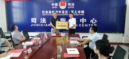 红安网消息 7月25日,华中师范大学法学院与红安县司法局签订深度合作框架协议。华中师范大学法学院党委书记杨臣与县司法局相关负责人在协议书上签字,华中师范大学法学院院长丁文向县司法局授予“法学实践基地”牌匾。