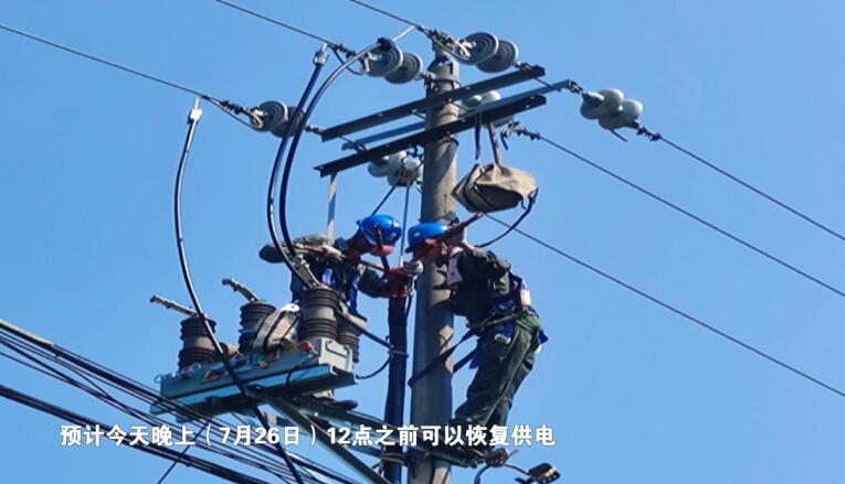 王建华说:“没有恢复的就是凉亭岗站,八里湾镇这边的有7条线路没有恢复,预计今天晚上(7月26日)12点之前可以恢复供电。”