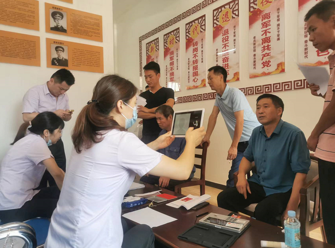 红安网消息 7月27日上午,上新集镇退役军人服务站一楼便民服务室热闹非凡,来自该镇部分村组的退役军人们正在这里办理退役军人优待证。他们携带身份证等相关证件,在工作人员的指导下,按照流程有条不紊的完成领表填写,证件照拍摄,政策咨询、申请受理、确认签字等各个环节。