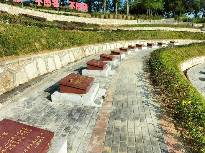 今年4月份以来,在红安县退役军人事务局支持下,观音阁村修建了革命烈士纪念陵园,并于2022年8月1日竣工,陵园占地2666平方米,安葬革命烈士55名。下一步,观音阁村将在湖北红安干部学院、七里坪镇党委政府指导下,系统整理55名烈士的革命故事,教育引导广大党员群众赓续红色血脉、传承红色基因,走好新时代的长征路。