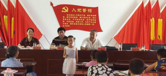 活动在雄壮的《国歌》声中拉开序幕,城关镇中心学校和祠堂口小学负责人、村两委和驻村工作队员与该村留守儿童齐聚一堂,采取现场讲授和互动问答等形式,共同学习防溺水、防火防电、防骗防拐、健康生活知识、道路交通安全等青少年安全知识,帮助孩子们增强安全意识,享受健康生活。同时鼓励他们要保持乐观积极的生活态度,努力学习,奋勇拼搏,争当热爱祖国、理想远大的好少年;争当勤奋学习、追求上进的好少年;争当品德优良、团结友爱的好少年;争当体魄强健、活泼开朗的好少年的“四有”新时代好少年。活动在歌曲《我向党来唱支歌》中结束。