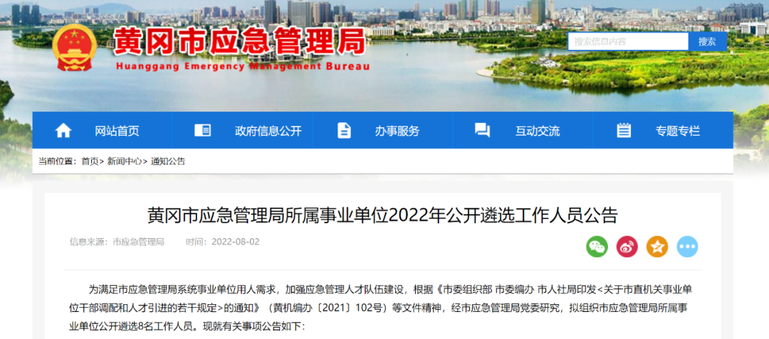 公开遴选工作开始了!黄冈市应急管理局正虚位以待,欢迎报考!