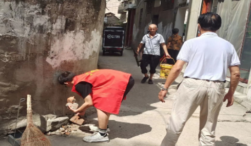 红安网消息 8月4日,城关镇土井社区墩子塘小区“两长四员”深入背街小巷,对各个巷道堆放的陈年积石进行清理。