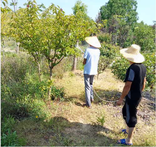 自8月初以来,该村共安排抽水泵管、洒水车10余台次,抽水浇灌中稻、花生、芝麻等农作物和树苗。