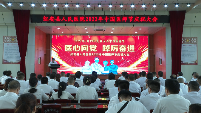 红安网消息 在第五届中国医师节来临之际,8月17日下午,红安县人民医院举办医师节庆祝活动,向全院广大医务工作者致以节日的问候和崇高的敬意,勉励全体医师坚守为民初心,勇担医者使命;传承前辈精神,锤炼高尚医德;精研业务技术,增强服务本领,以担当作为、创新实干的奋斗姿态,“医”心向党、踔厉奋进,为推进县人民医院全面高质量发展,创建高水平三级医院贡献青春和力量。