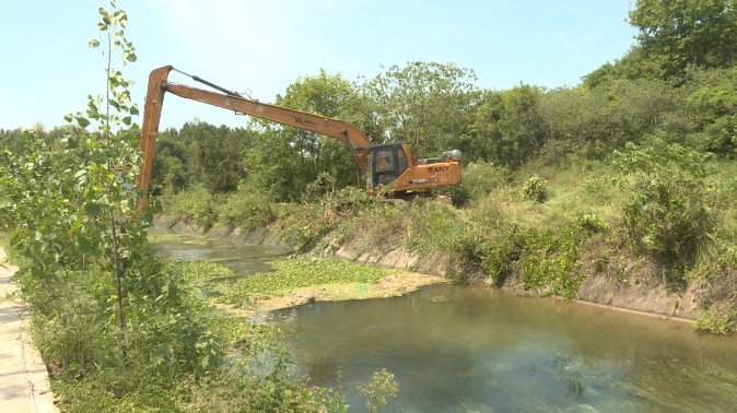 河道清淤工程相关负责人杨建生说:“这个水库老渠道全长有8.4公里,挖掘机已经挖了3、4天了,我们打算在20天左右把它彻底清淤,清淤之后,水的流量可以达到6个流量,尽量保证底下农田的灌溉。”