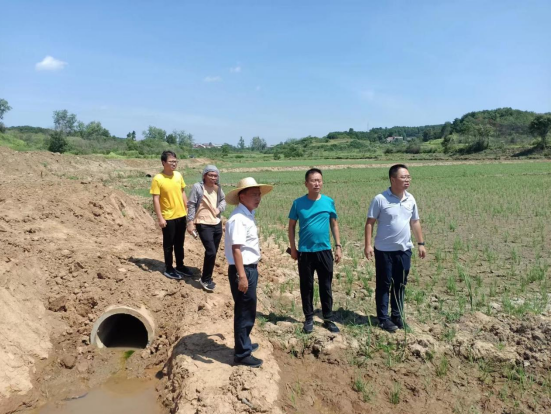 “有多少亩田缺水严重?”、“附近还有没有其他的水源?”镇党委副书记、镇长石朝辉带领专班人员连轴转,奔赴周家冲村、七峰村、陈升庙村、易杨家村等地查看旱情和渠道通水灌溉情况。