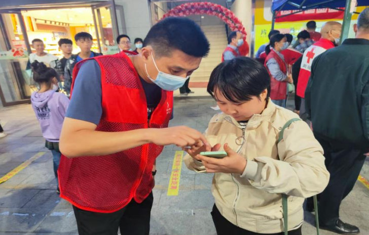 采样现场大家各尽其职,志愿者进行文明交通劝导、发放口罩、协助居民快速获取健康码、帮助医务人员扫码登记,整个工作流程快、准、稳,群众即采即走。