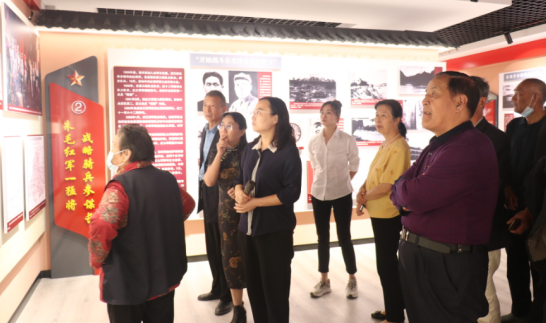 乡长余俊锋陪同老干部参观百罗村共同缔造示范点、郭受九村郭天民上将展厅并重温入党誓词、盛联光电公司生产车间。