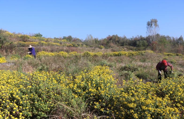 张河村今年大力整治抛荒岗地200亩,发展野菊花种植,壮大村级集体经济,带动脱贫户务工增收。野菊花前期长势良好,出梅以来,我县持续高温晴热少雨,野菊花受旱严重,张河村不等不靠,组织劳力机械抗旱保苗,并加强田间管理,降低旱情带来的损失,在大旱之年喜获丰收。杏花乡党委书记程晓松在现场了解收成情况后,肯定了该村的工作成绩,并鼓励该村扩大种植面积,引进市场主体兴建加工车间,形成支柱产业,带动村民稳定增收。