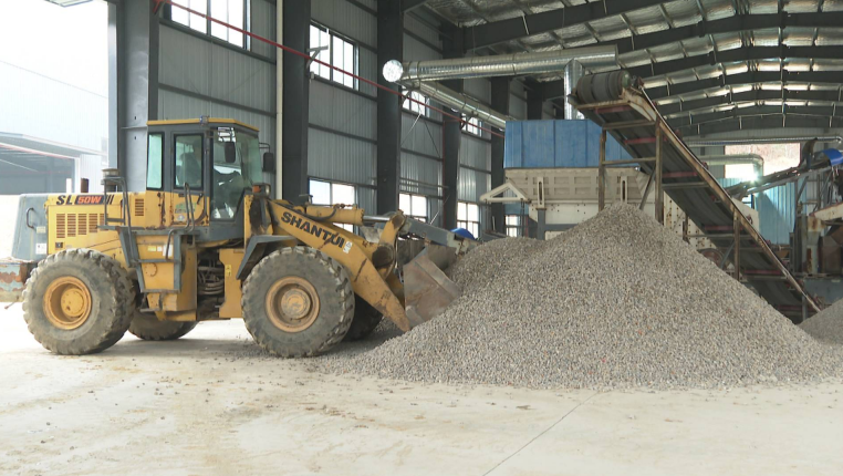 红安县荣鑫环保材料有限公司车间生产主管秦安居:在县委县政府和杏花乡党委政府的大力支持下,目前已建成厂房、办公楼等配套设施,已于今年二月份正式投产,一期主要进行建筑垃圾处理,年处理建筑垃圾60万吨。