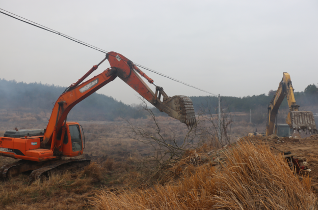 红安网消息 2月10日,两台挖掘机在杏花乡红花冲村的田畈中开展清表整带作业,标志着红安县杏花乡高标准农田建设(红安县第二十二标段)正式开工。县农业农村局高标办和杏花乡相关负责人,杏花乡农业服务中心、施工方及所涉项目的村负责人参加了现场开工,并组织专题培训。