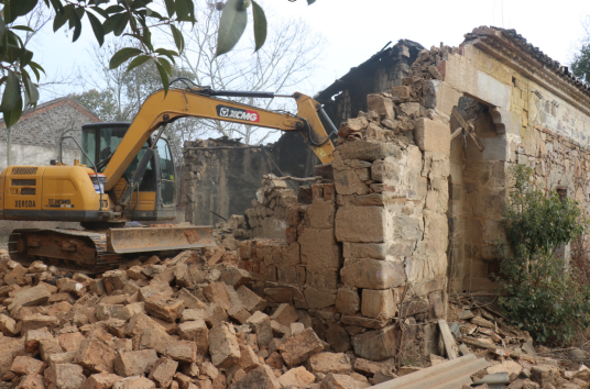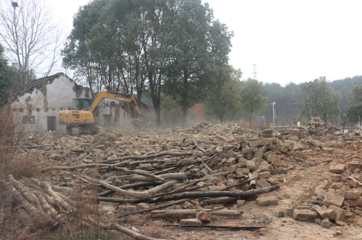 红安网消息 2月28日,在红安县杏花乡牌坊店村孙畈湾,两台挖掘机正有序拆除湾中两排破旧房屋,平整闲置宅基地,统一规划建设美丽乡村,村干部在现场协调,保证施工安全。
