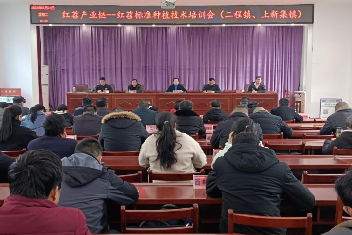 红安网消息 3月21日,红安县二程镇举办红苕产业链——红苕标准种植技术培训,邀请优秀农业技术人员和种植大户结合自身种养殖经验,从栽培施肥、病虫害防治、田间管理及储藏技术等方面,为二程镇、上新集镇农业服务中心技术员、市场主体、种植大户共80余人集中授课,力争通过培训进一步促进红安县红苕产量和质量双提升。