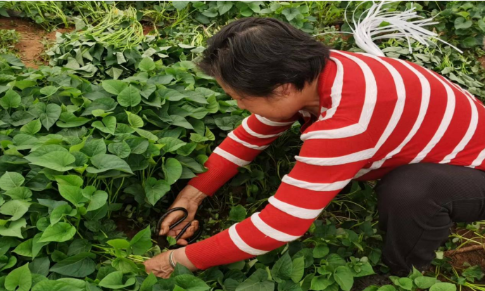 红薯种植基地为当地群众提供了就近务工的便利,现在,基地里每天都有十几名村民同时在务工。“我就是王贵轩村人,每年这个时候农闲就来基地里剪红薯苗,剪够100棵捆成一捆,这小小的红薯苗可都是钱,我们每天剪苗,一天差不多能挣80元钱呢!”在王贵轩村红薯育苗基地,正在剪红薯苗的村民石花荣高兴地说。