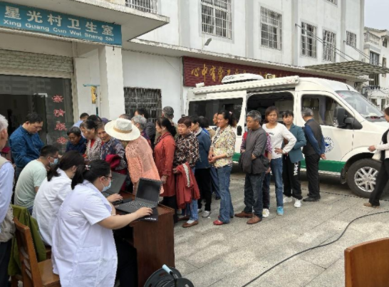红安网消息 4月19日,红安县杏花乡星光村为村民组织了一次免费体检。