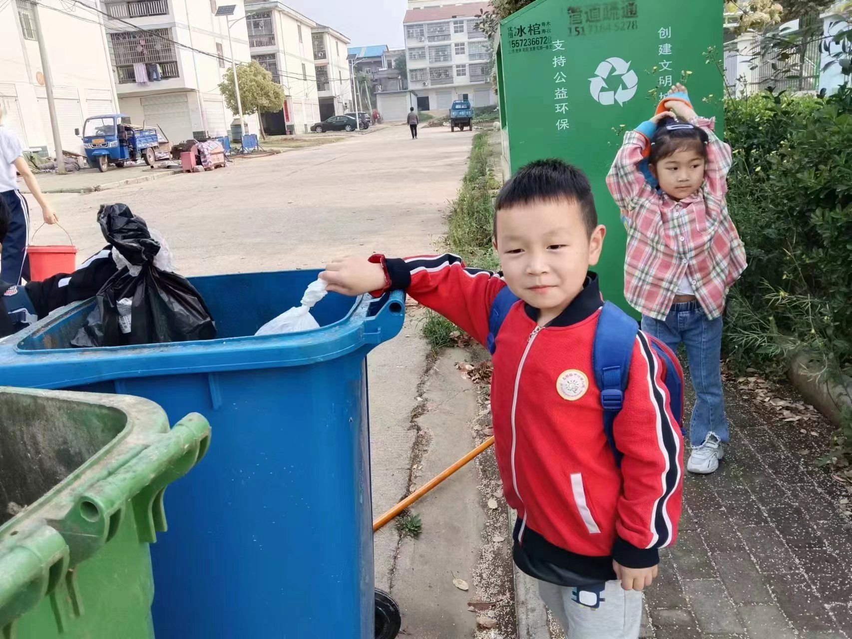 教育活动结束后,孩子们在放学途中主动拾捡垃圾扔进垃圾桶,回家浇灌花草树木。