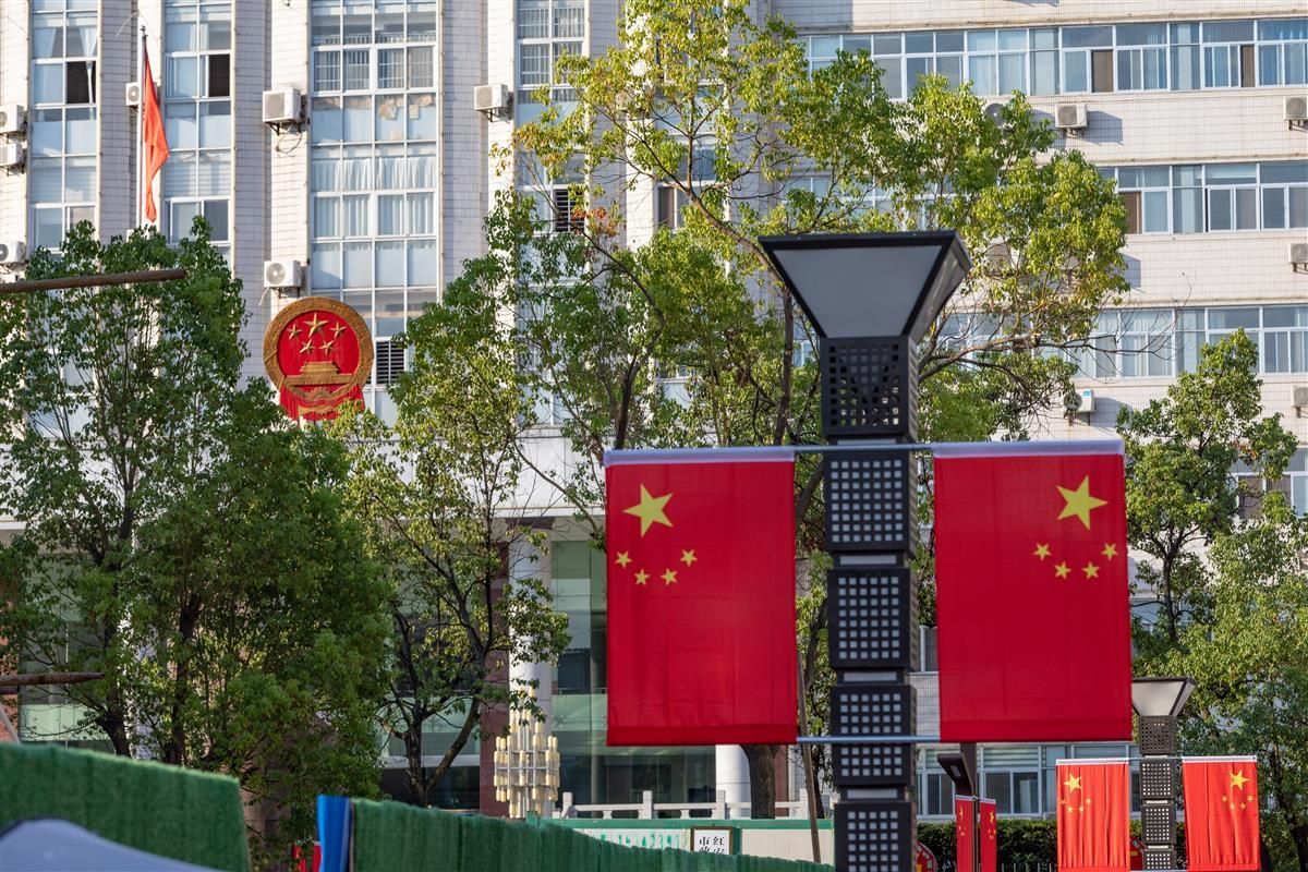 随着国庆佳节脚步临近,在中国第一将军县——湖北省红安县大街小巷,国旗迎风飘扬。这座红色小城的人们,正用满城的中国红表达对新中国最真挚的祝福。