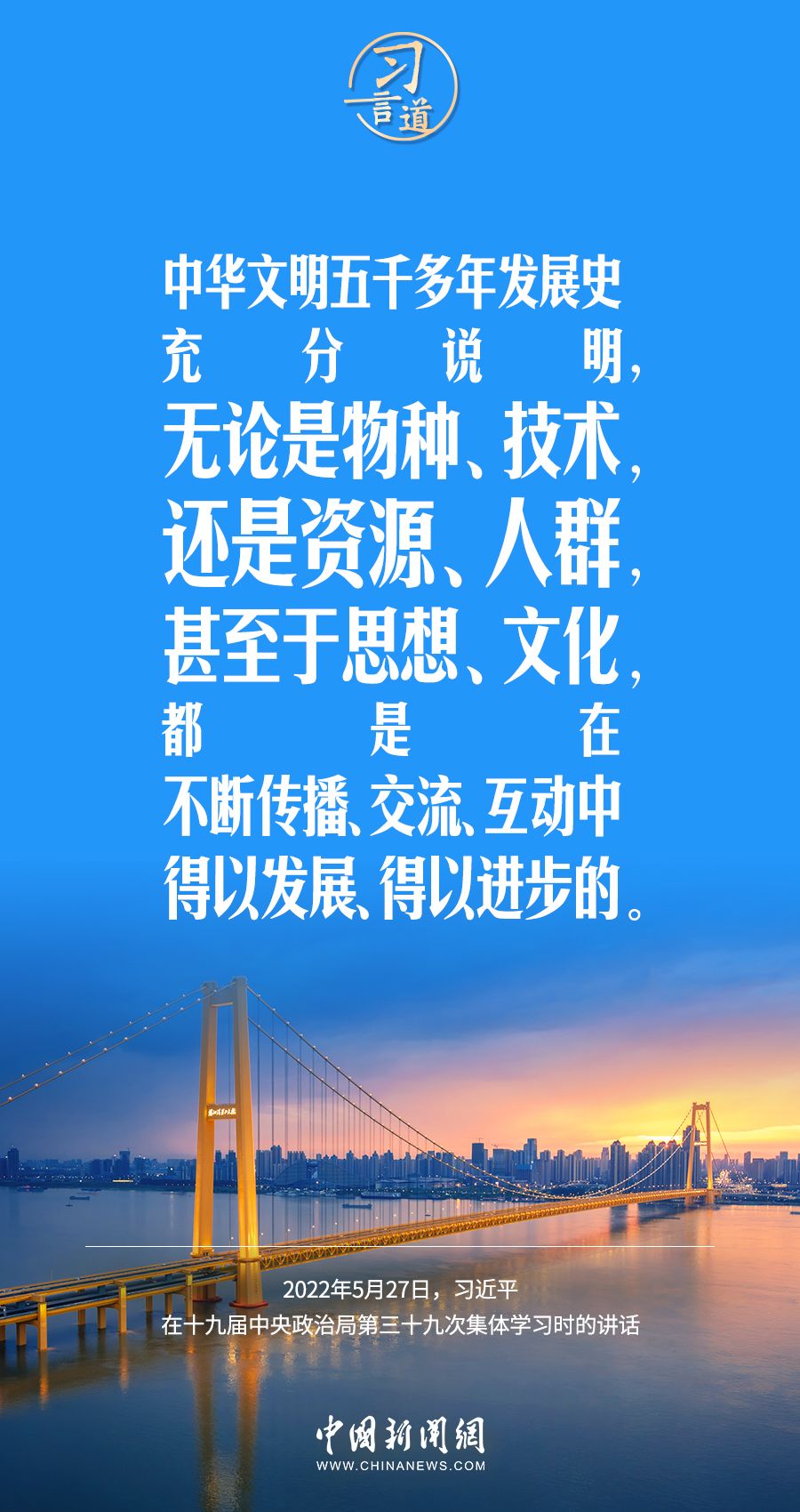 文明因交流而多彩,文明因互鉴而丰富。党的十八大以来,习近平总书记在多个场合积极倡导尊重世界文明多样性,推动中华文明和世界各国文明在交流互鉴中实现共同进步。