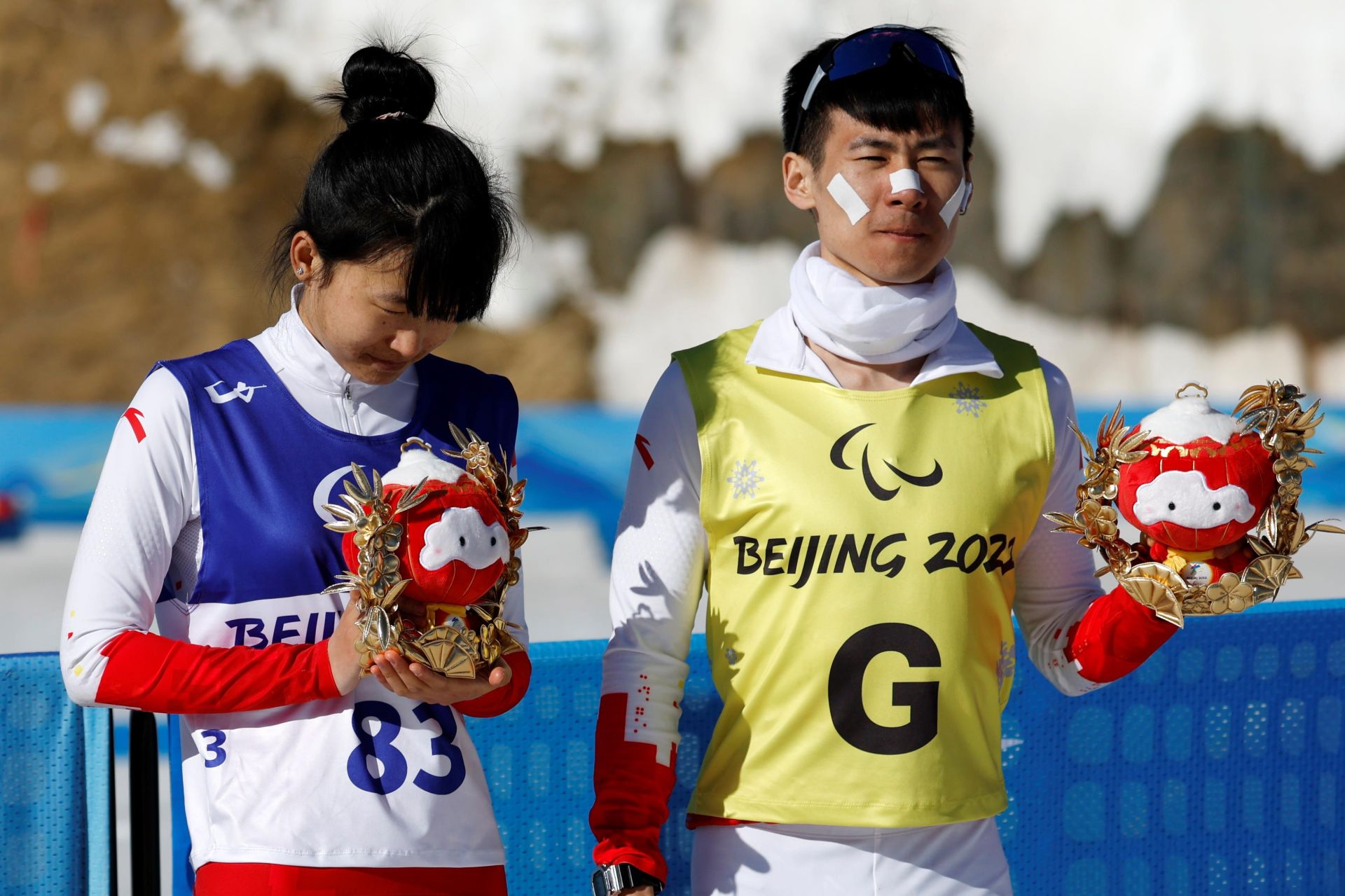 △2022年3月8日,2022冬残奥会残奥冬季两项女子中距离(视障)比赛中,中国选手王跃获季军。