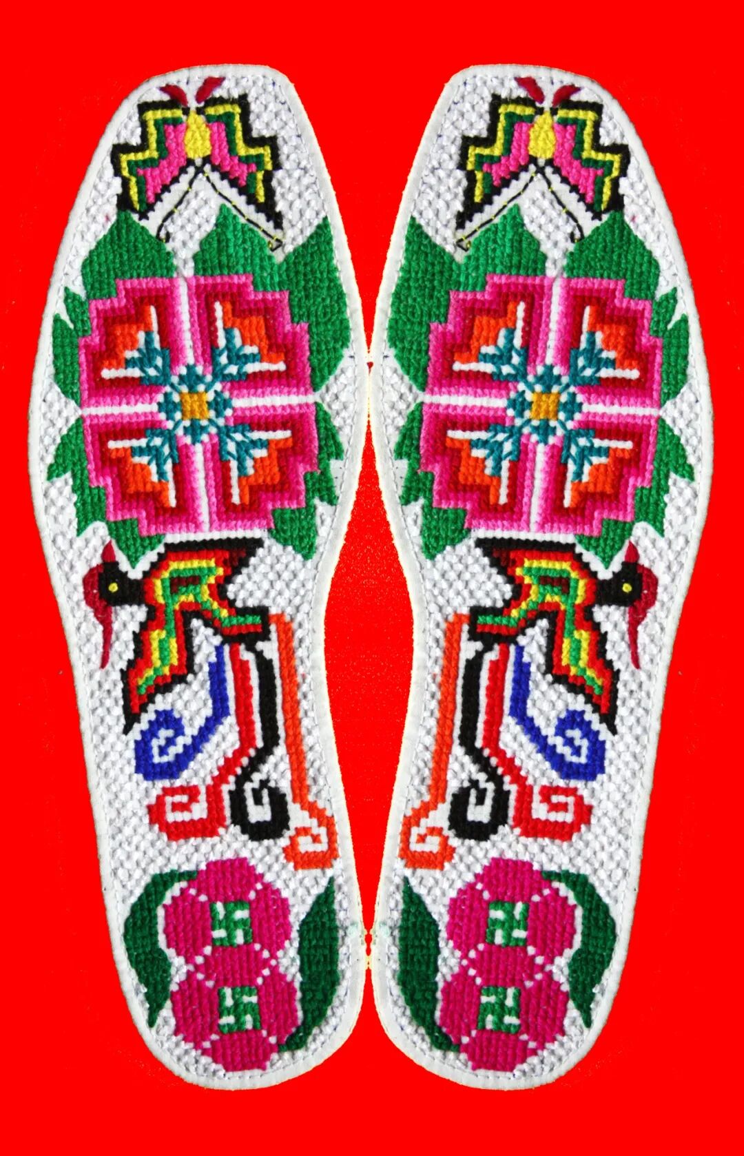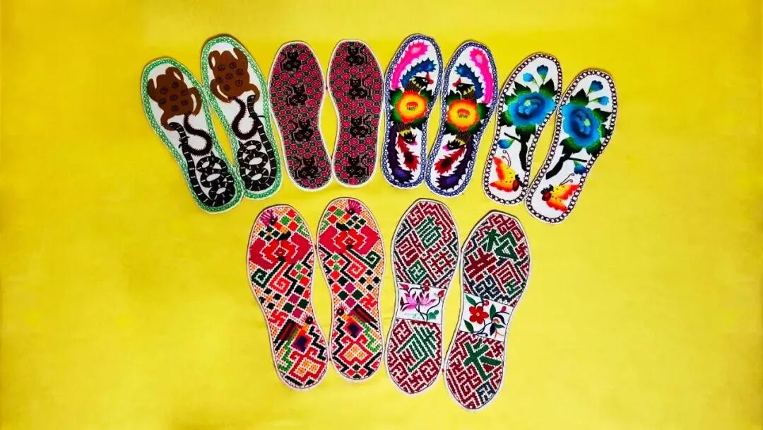 “红安绣活”应用于鞋垫、布鞋、童帽、枕面、枕套、布兜、衣面、衣边、门帘、窗帘、帐筵、桌围、椅褡……等诸多生活日用纺织品的美化,其中尤以“红安绣花鞋垫”著称于世。